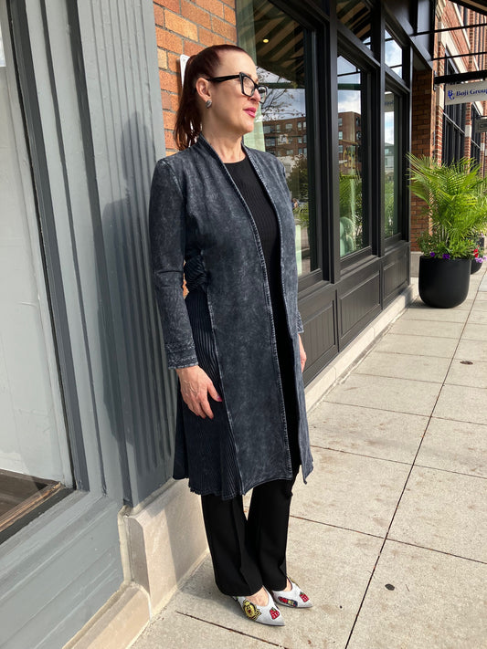 AUTUNNO SHEARLING FOX TRIM COAT - GREY