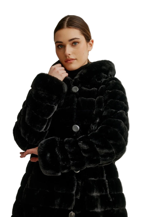 Reversible Vegan Fur Coat - Black