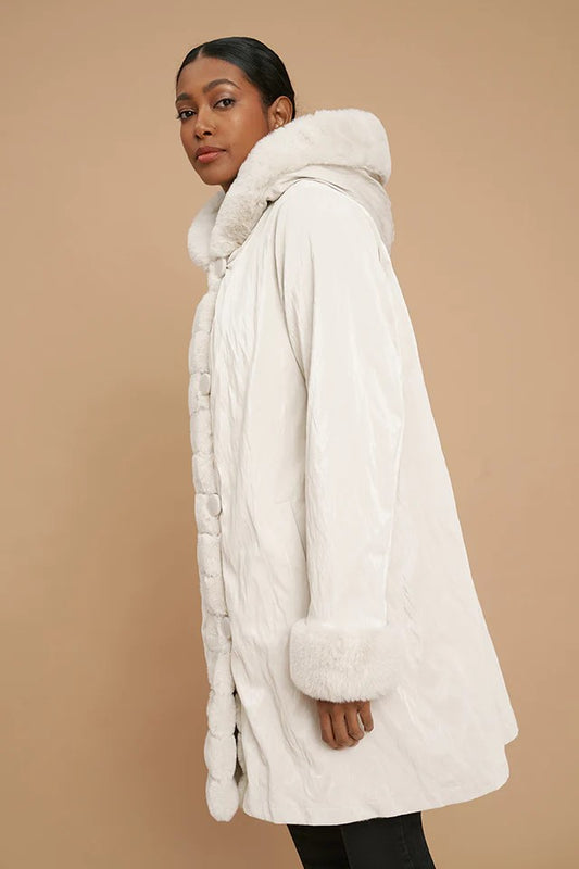Reversible Vegan Fur Coat - Cream