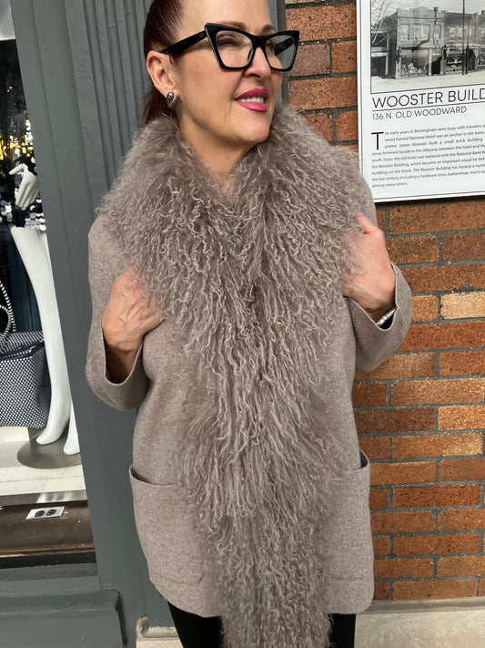 MERINO CECILY LAMB TRIM CASHMERE SHAWL JACKET - BLACK
