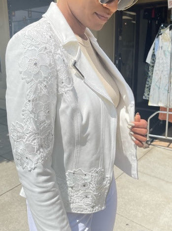 White Ultra Suede Lace Jacket