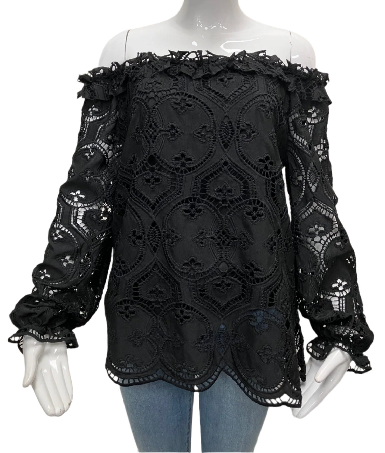 Indulge in luxury with our Black Off Shoulder Lace Top. This A-line top effortlessly transitions from on to off the shoulders, providing both versatility and sophistication. Crafted with intricate lace, it adds a touch of elegance to any outfit. Elevate your style with this must-have piece.