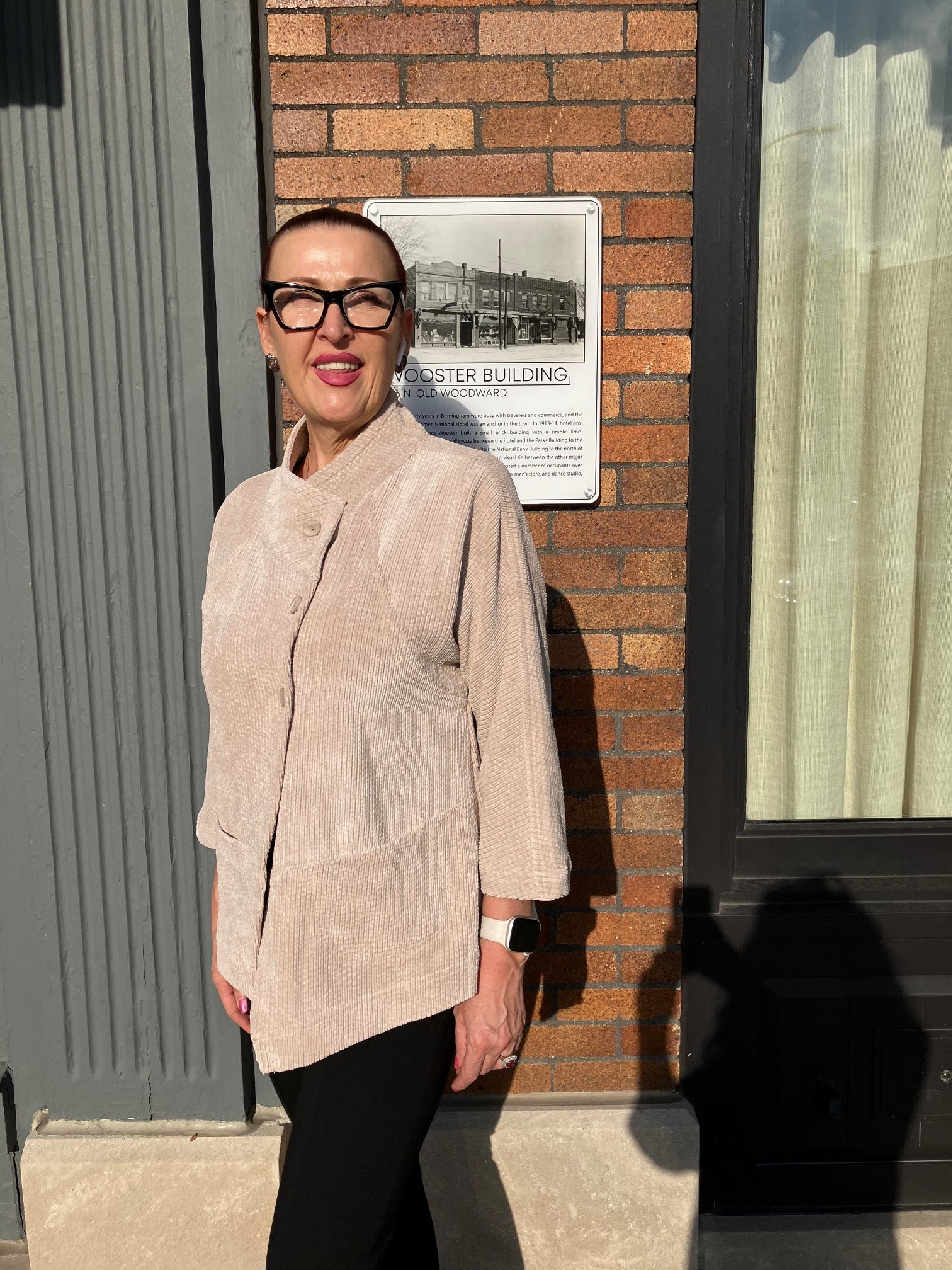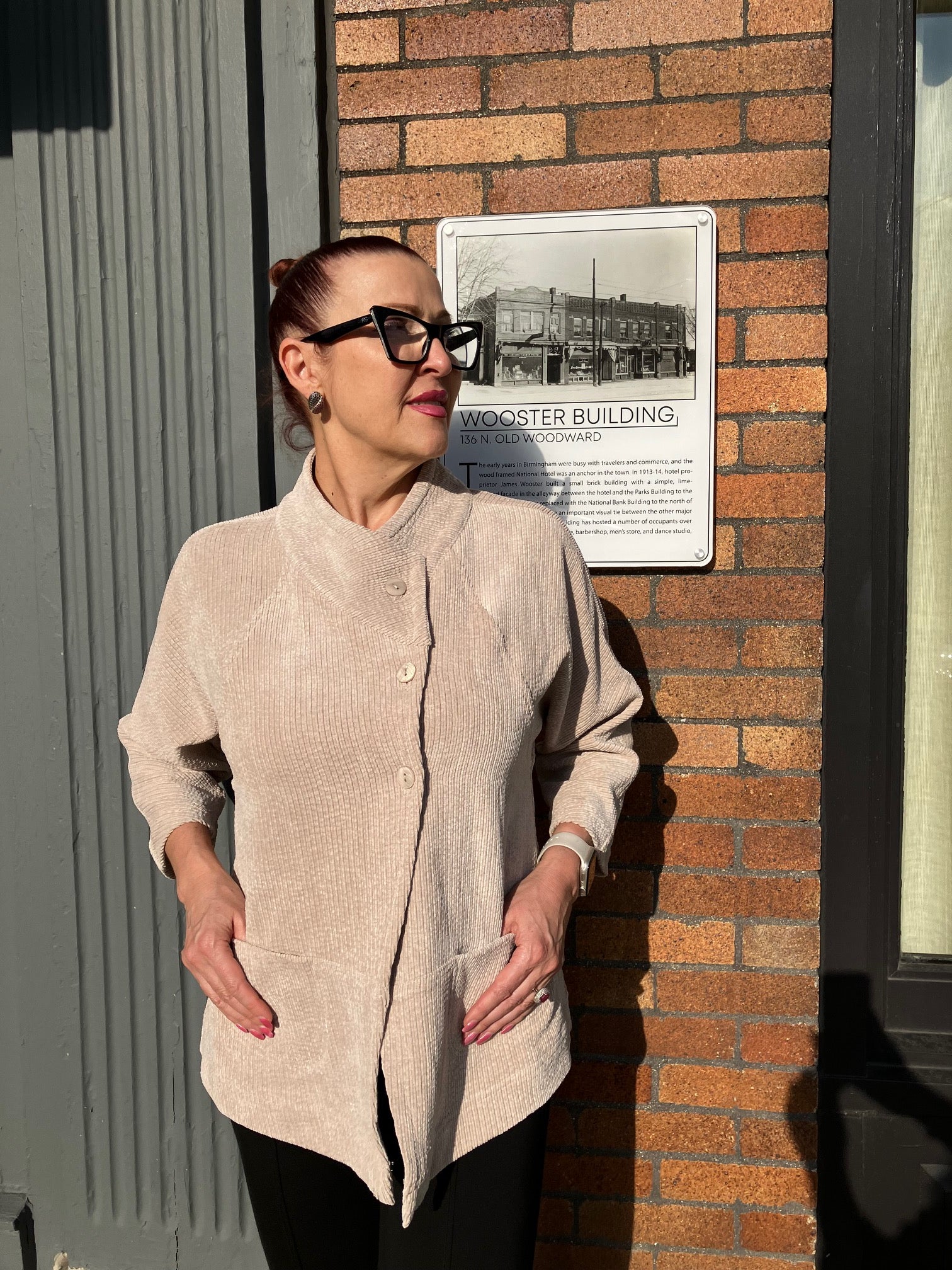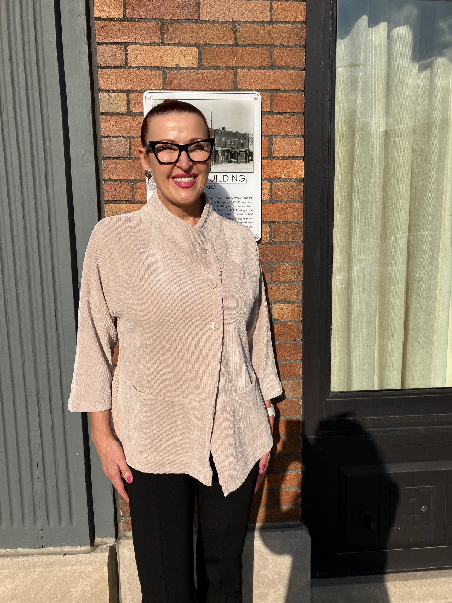 Indulge in luxurious texture and versatile style with our Corduroy Tan Top. The diagonal button detailing adds an elevated touch, while the gathered back enhances your figure. Dress it up as a top or wear it as a jacket - the possibilities are endlessly chic.